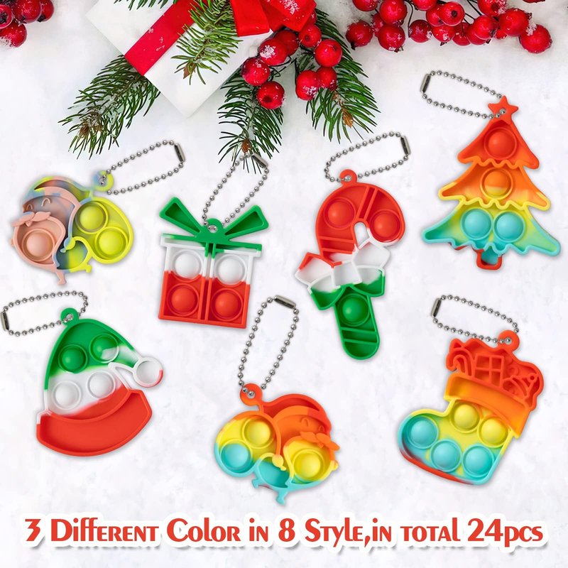 - 【KIDS CHRISTMAS GIFT】: Great christmas day gift for kids friends, classmates, students in school activities like christmas day gifts exchanged, class Christmas party gift, giveaway or party games, etc. Valuable pop it pack perfect for kids Christmas New Year parties