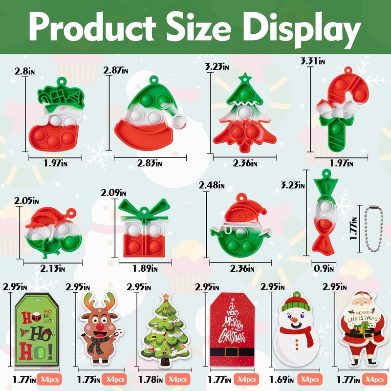 - 【UNIQUE DESIGN】: Each Christmas popper fidget toy come with a gift card. "Pop, pop, pop" sounds very enjoyable and decompressed. Everyone will have a perfect Christmas with our Christma keychains
