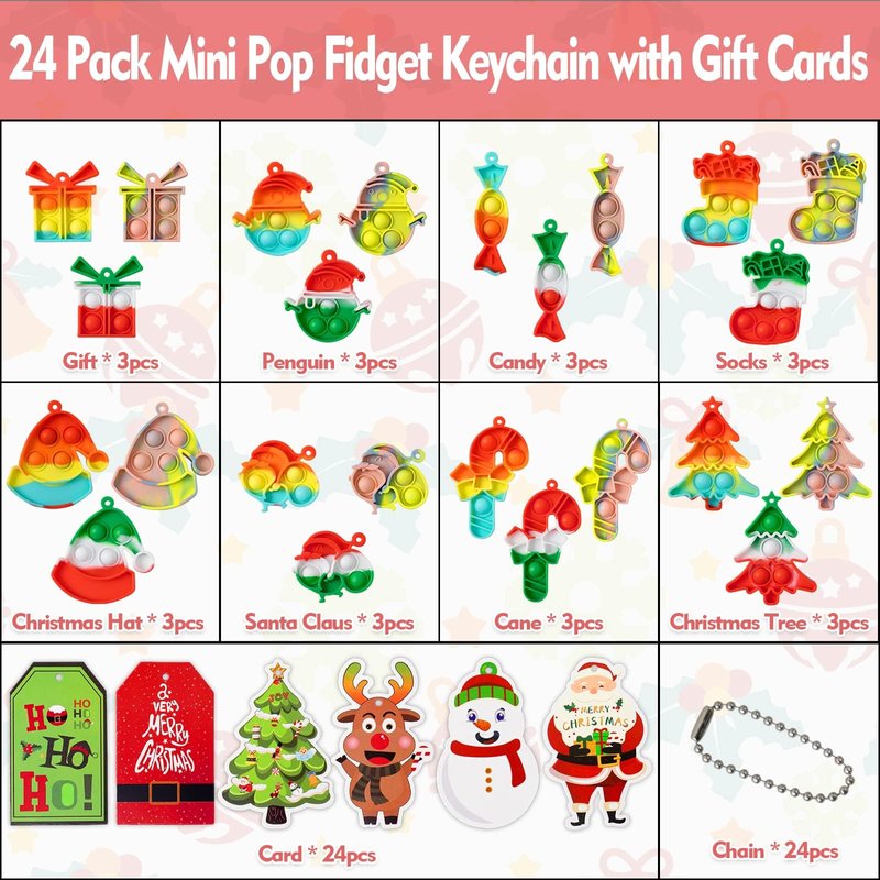 AMUHUA Christmas Party Favors for Kids - 24 Pack Mini Pop Fidget Keychain with Gift Cards for Toddler Kids Classroom Gifts Christmas Stocking Stuffers Gifts, Christmas Treats Goodies