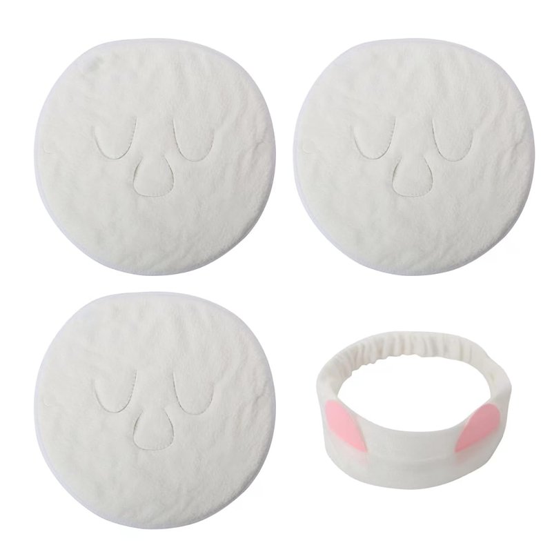 AMUYUKEJI【3 pack Reusable Face Towel Mask and【1 pack 】 hair band, Comfortable snowflake cotton, For warming the face before applying a mask to open the pores and increase blood circulation