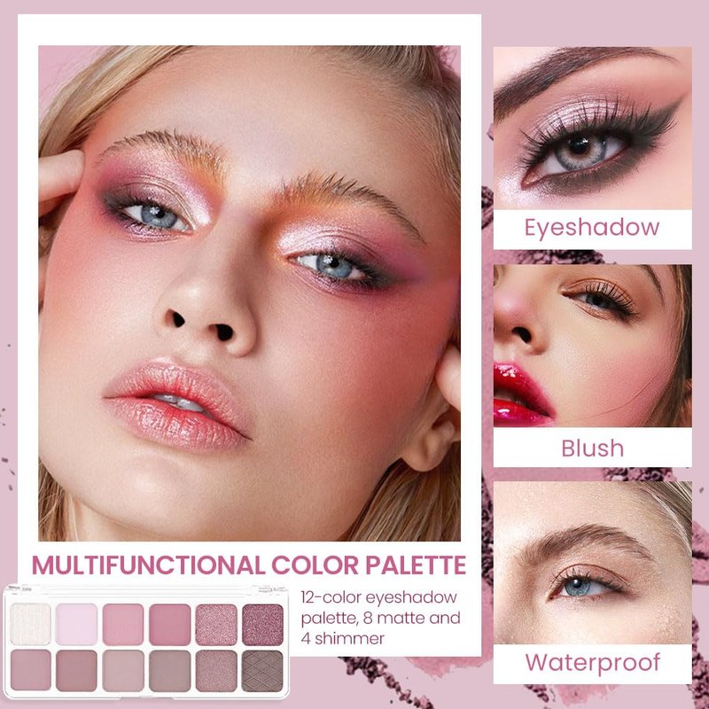 AMY'S DIARY 12-Color Rose Purple Pink Eyeshadow Palette for Versatile Day-to-Night Looks – Blendable, Long-Lasting, and Highly Pigmented. Elevate Your Eye Makeup– Unleash Your Unique Style (10#)