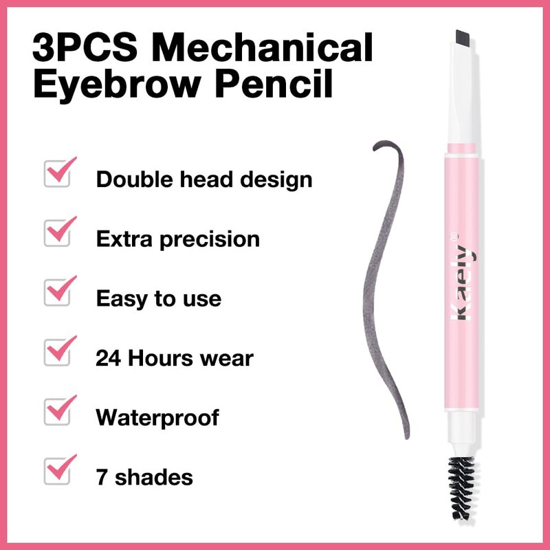 AMY'S DIARY 3pcs Eyebrow Pencil Retractable Definer, Dark Gray, Dual-Sided Brow Brush, Fine Tip, Shapes, Defines, Fills Brow Makeup Flapiz Para Cejasills (Dark Gray)