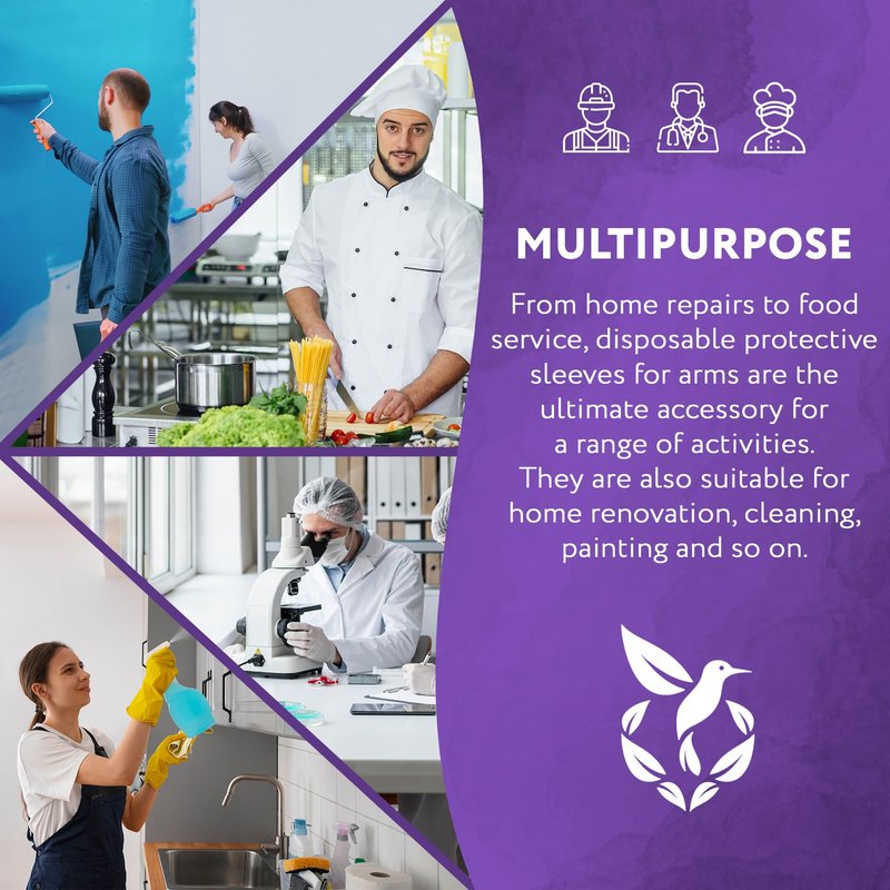 - Versatile Use For Every Occasion. From home repairs to food service, disposable protective sleeves for arms are the ultimate accessory for a range of activities. Waterproof arm sleeve protector resists scuffs during painting and maintains hygiene in restaurants and labs.