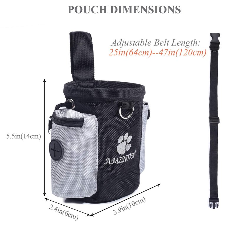 AMZNOVA Dog Treat Bag, Puppy Training Pouch, Animal Walking Snack Container Best Hiking Toys Pack Dispenser Carries with Waistband, Black
