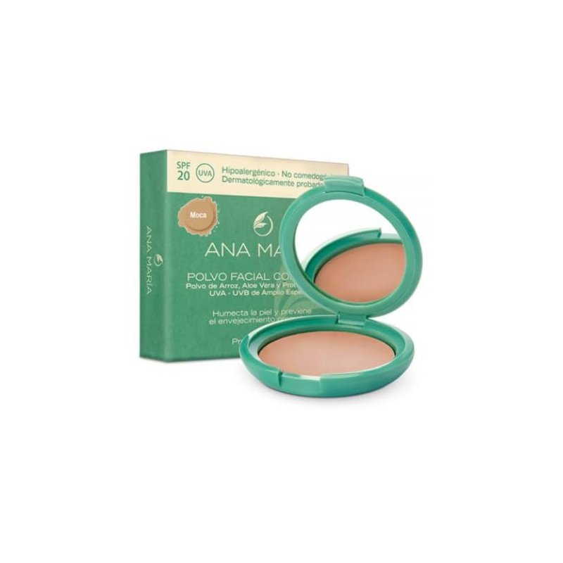 Ana Maria Maquillaje Cosmeticos | Polvo Facial Compacto Arroz Aloe Vera FPS 20 UVA | Make up Pressed Powder SPF 20 0.5oz-14gr (Moca | Mocha (25))