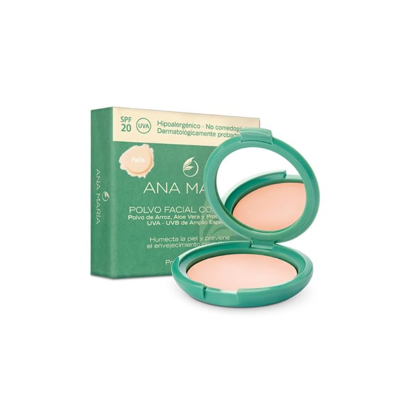 Ana Maria Maquillaje Cosmeticos | Polvo Facial Compacto Arroz Aloe Vera FPS 20 UVA | Make up Pressed Powder SPF 20 0.5oz-14gr (Perla | Pearl (2))