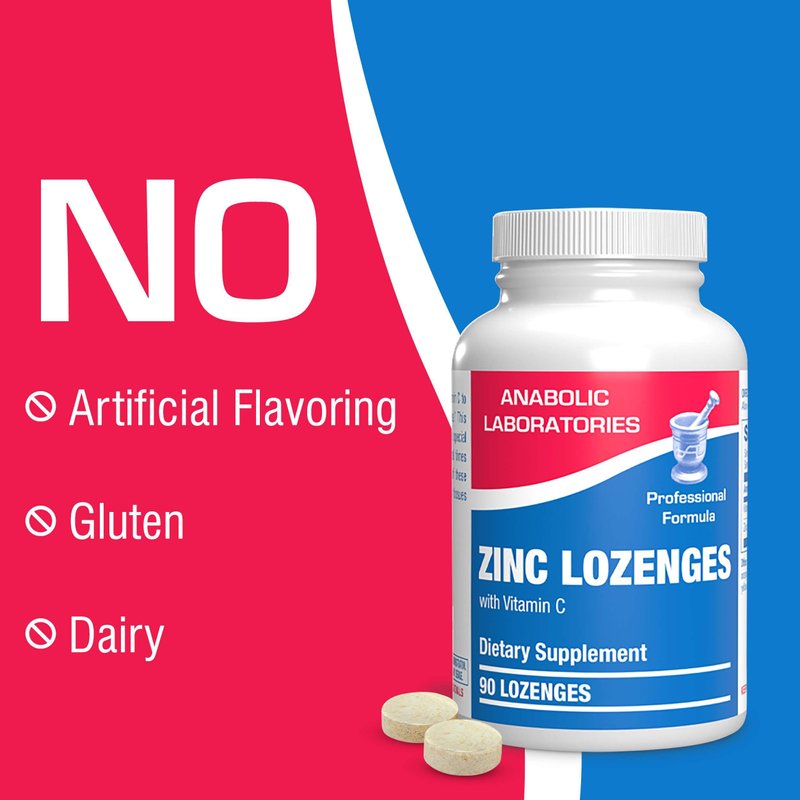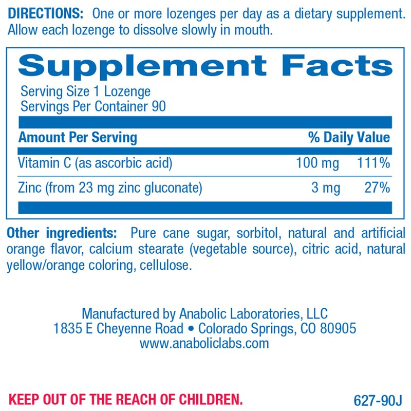 Anabolic Laboratories Zinc Lozenges for Adults with Vitamin C - 90 Orange Flavored Zinc Gluconate Lozenges for Immune Support and Throat Irritation