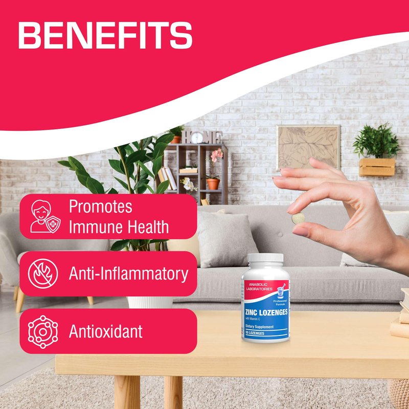 - These zinc lozenges supplement provides zinc and vitamin C to support the body's natural defenses.