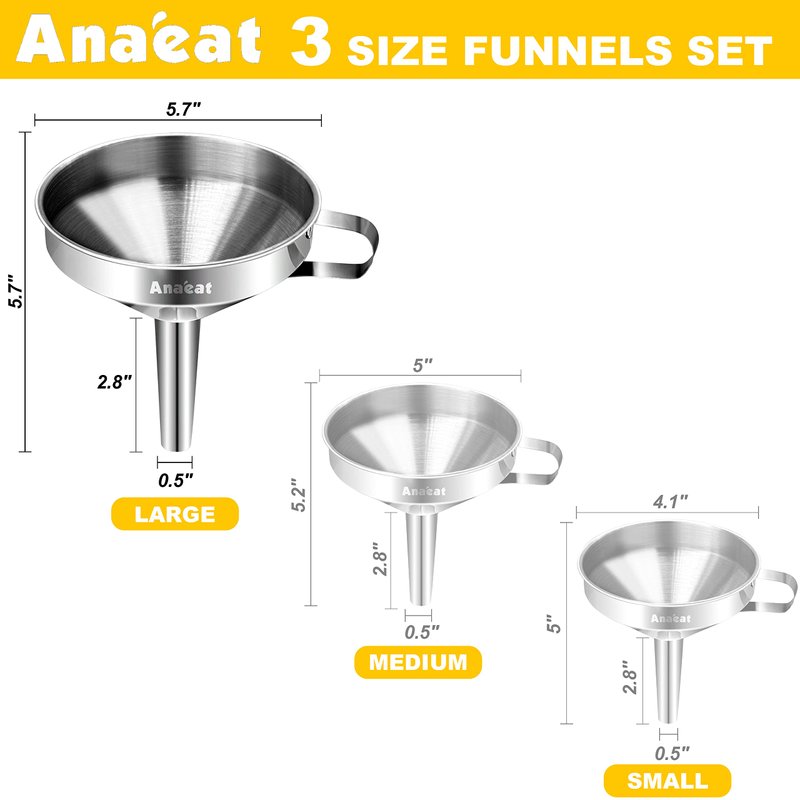 - 【 BRAND QUALITY GUARANTEE 】:QUALITY CAN SPEAK ITSELF. Anaeat focuses on kitchenware research and development. We are so confident that we have the best Funnel on the market. If you have any problems with Anaeat products, please feel free to send us a message by Amazon and we'll resend to you right away for free, or full money back. We are very concerned about every order, and try our best to Provide our customers with HEALTHY & DURABLE & ECOFRIENDLY kitchen accessories.