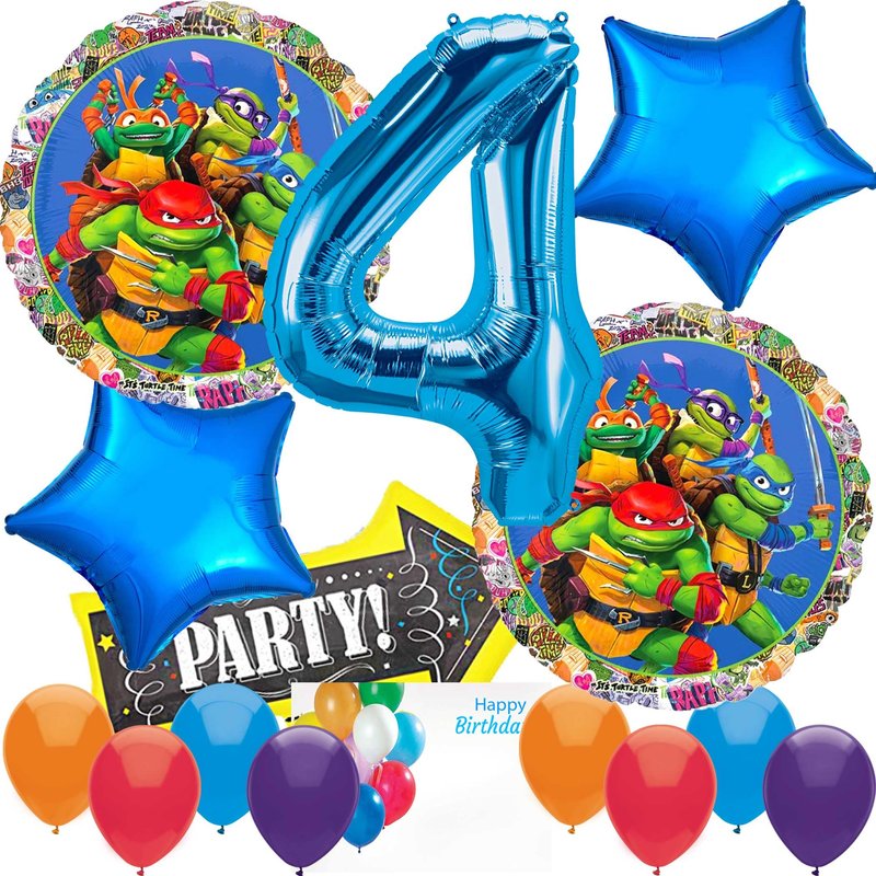 Anagram Licensed Birthday Balloons, for TMNT Teenage Mutant Ninja Mayhem Turtles Theme Collection, Party Accessory, Multicolor, 4th Birthday, Various