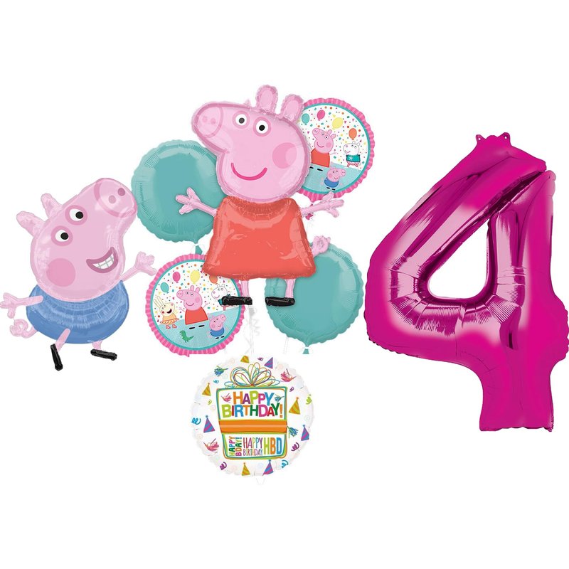 - (1) 32" Peppa Foil Balloon, (1) 24" George Foil Balloon, (2) 17" Round Peppa Foil Balloons, (1) 34" Giant Pink Number 4 Foil Balloon, (1) 18" Mayflower Products Happy Birthday Present Foil Balloon and (2) 18" Round Robins Egg Foil Balloons. Ribbon Not Included. All Anagram Licensed Balloons are Made in USA. Founded in 1977, Anagram International leads the world in innovating and manufacturing foil balloons.