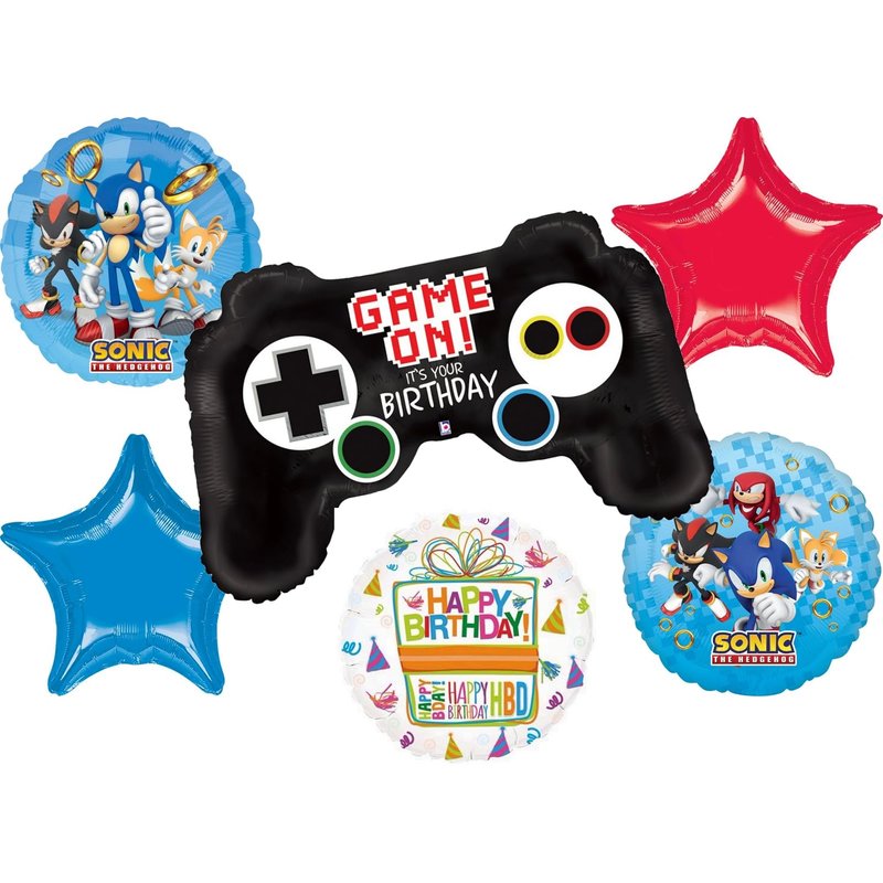 Anagram Sonic Birthday Party Supplies Video Gamers Controller Hedgehog Foil Balloon Bouquet Decorations 6pc