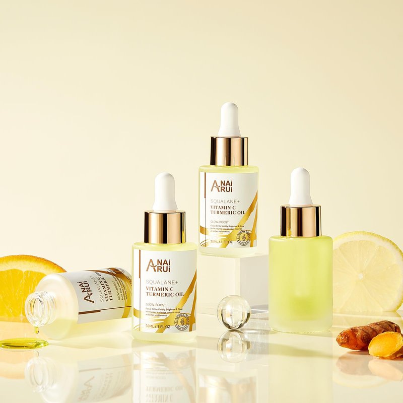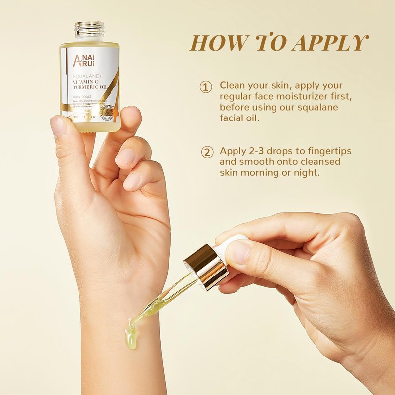 - ANAI RUI Squalane Vitamin C Turmeric Facial Oil is a lightweight oil with a smooth texture, suitable for all skin types, including dry, sensitive, and oily skin.