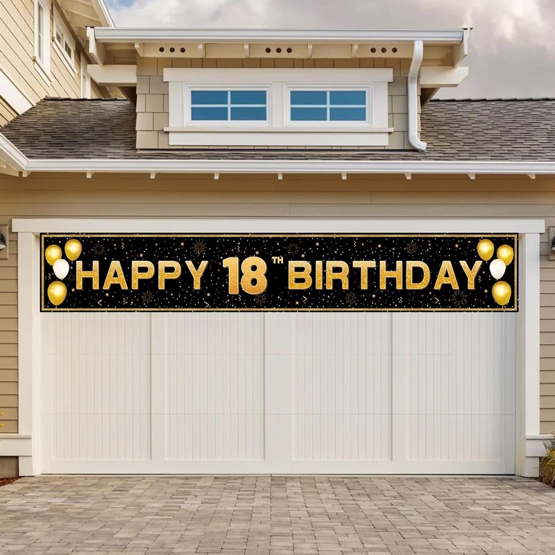 3. The black and gold color scheme is classic and sophisticated, adding a touch of elegance to the birthday celebration. The banner measures [insert size] and includes the words "Happy 18th Birthday" in large, bold letters. The black background and gold lettering ensure that the banner will stand out and be visible from a distance, making it a great addition to any party space.