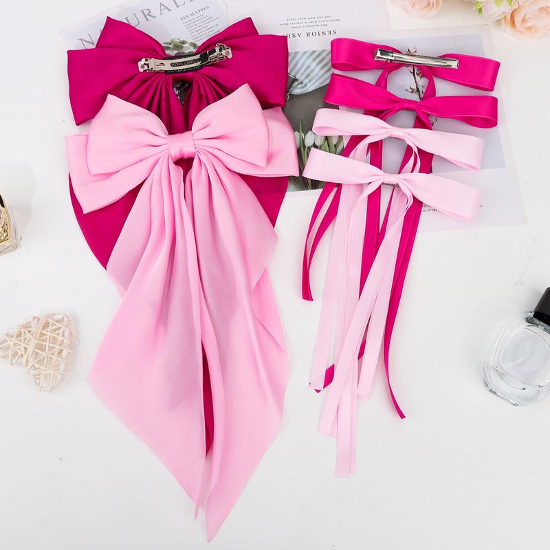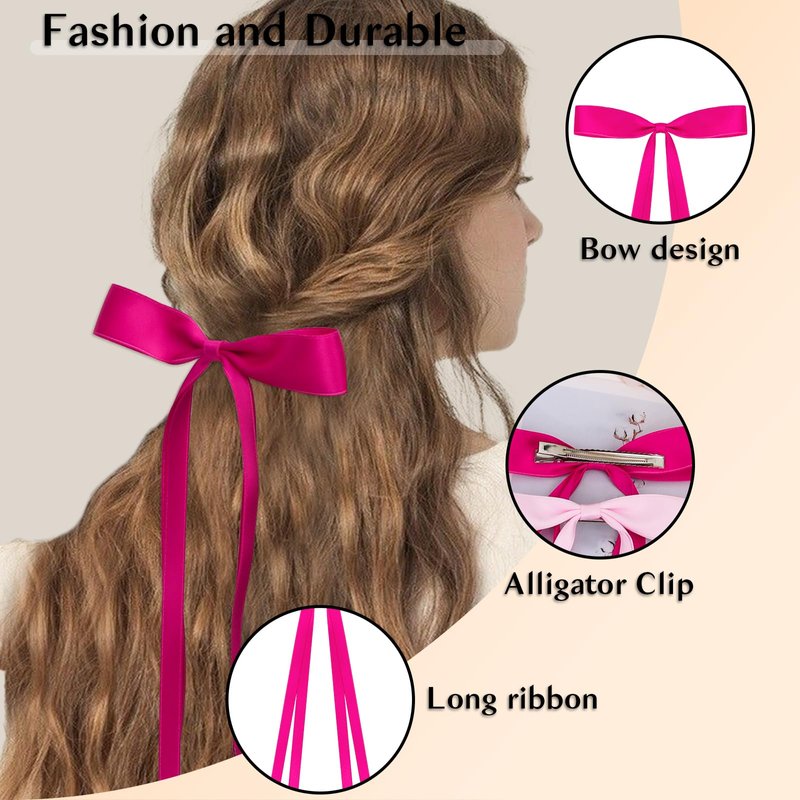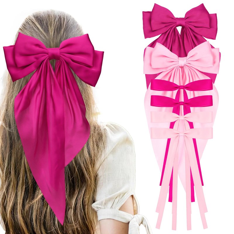 - A Great Value Set:The set contains 4 Silky Satin Hair Bows with Tassel+2 Silky Satin Hair Ribbon Oversized Long Tail Large Big Hair Bows Hair Barrettes Metal Clips. You will all get 6 hair ribbons (Pink and Hot pink).