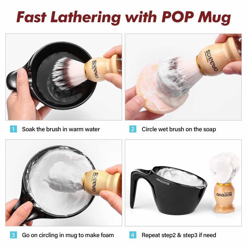 WHAT YOU GET: 1 x Shaving Brush,1 x POP Mug,1 x Shaving Soap,1 x Package Box
