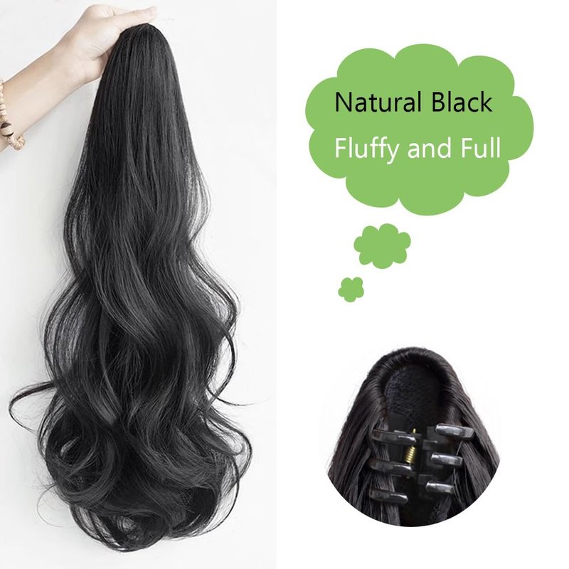Anbuwei Claw Clip Ponytail Extension Synthetic Curly Wavy Clip in Hair Pieces 18 Inch Long Pony Tails Hair Extensions for Women (Natural Black)