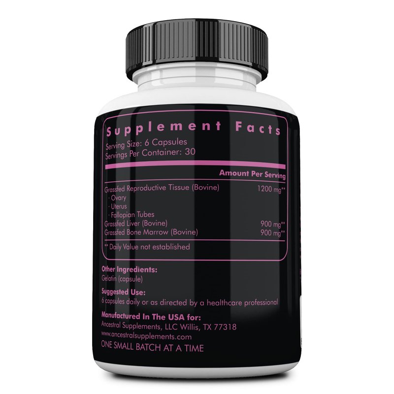 - BONE MARROW CAPSULES: Each 500mg capsule of Ancestral’s women’s liver supplement contains a bone matrix, bone marrow and cartilage, high concentrations of stem cells, growth factors, and fat-soluble activators.