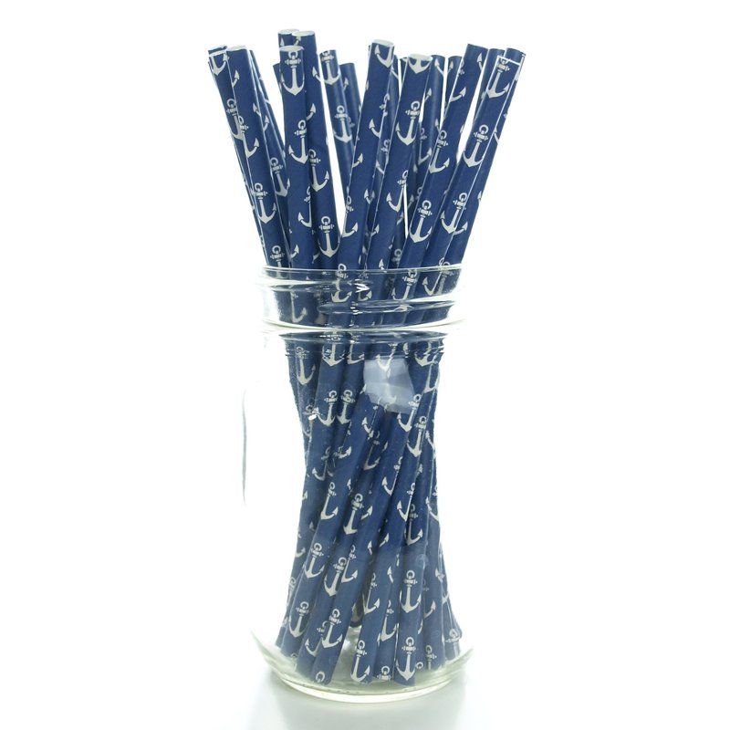 Anchor Sailing Straws (25 Pack) - Navy Blue Sea Anchors Paper Straws, Sailor & Nautical Party Supplies, Ahoy Matey Drinking Straws