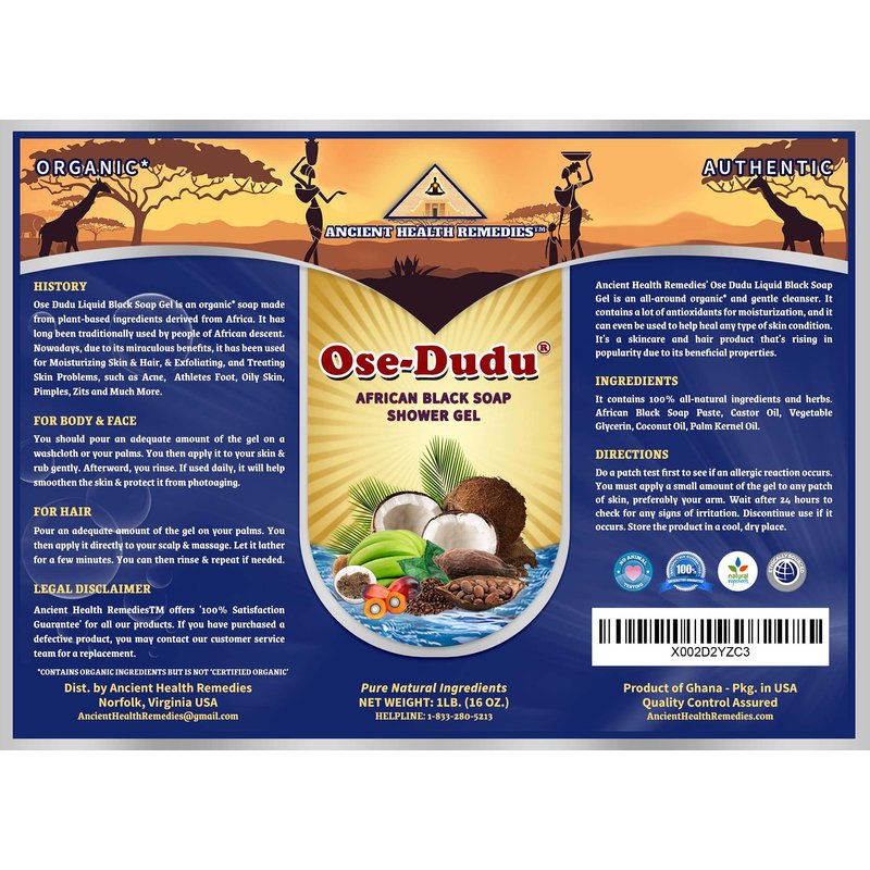 - *BUYING ANCIENT HEALTH REMEDIES AUTHENTIC TRADITIONAL OSO DUDU LIQUID BLACK SOAP GEL is the healthiest, natural and most affordable way to cleanse ALL SKIN, HAIR, AND BODY TYPES. This wonderful Shower Gel is a “All Natural' alternative to chemically refined skincare products. Comes in a ready to use easy dispensing, plastic bottle.