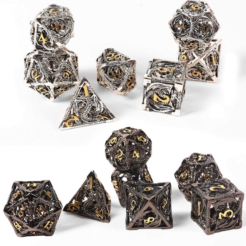 - 【New Hollow Design 】This is the new style Hollow metal dice set . There are bigger but lighter than normal metal dice.When you roll the dice,you will hear a sweet sound like a wind chimeThese dice are eye catching and can get lots of compliments at the table.It is a very popular dice gift for friends and famlily.