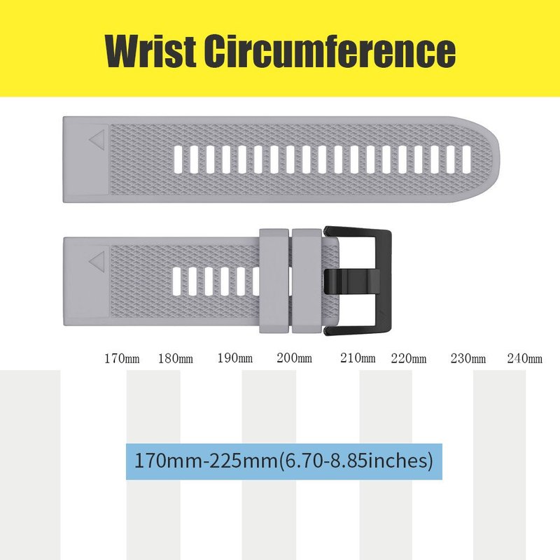- [Soft silicone material] Band secures great with the double strap holders, secure and comfortable to wear all day. 22mm Silicone band for Fenix 5/Fenix 5 Plus/Forerunner 935/Forerunner 945/Approach S60/Quatix 5. NOT FIT for Fenix 5x or 5S. The silicone band fits well and is solidly mounted to the watch.