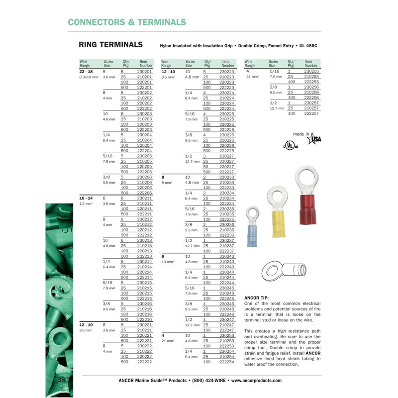 - Ancor's Marine Grade terminals differ from automotive terminals by being designed for the harsh marine environment.