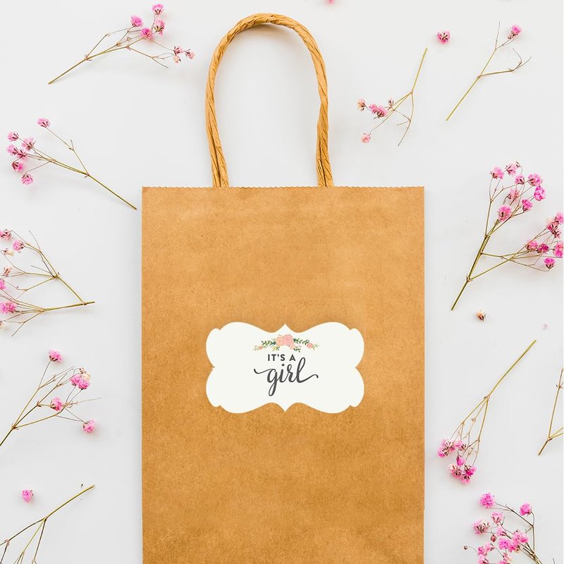 Andaz Press Fancy Frame Rectangular Label Stickers, It's a Girl!, Floral Roses, 36-Pack Wedding Decorations, Wedding Favors, Stickers for Packaging, Party Favor