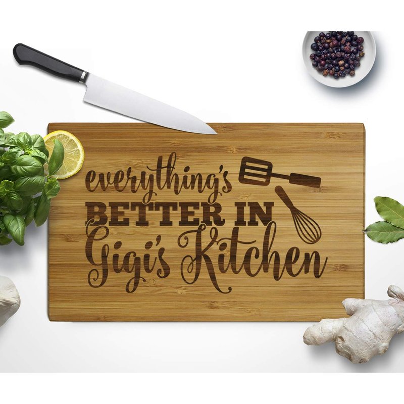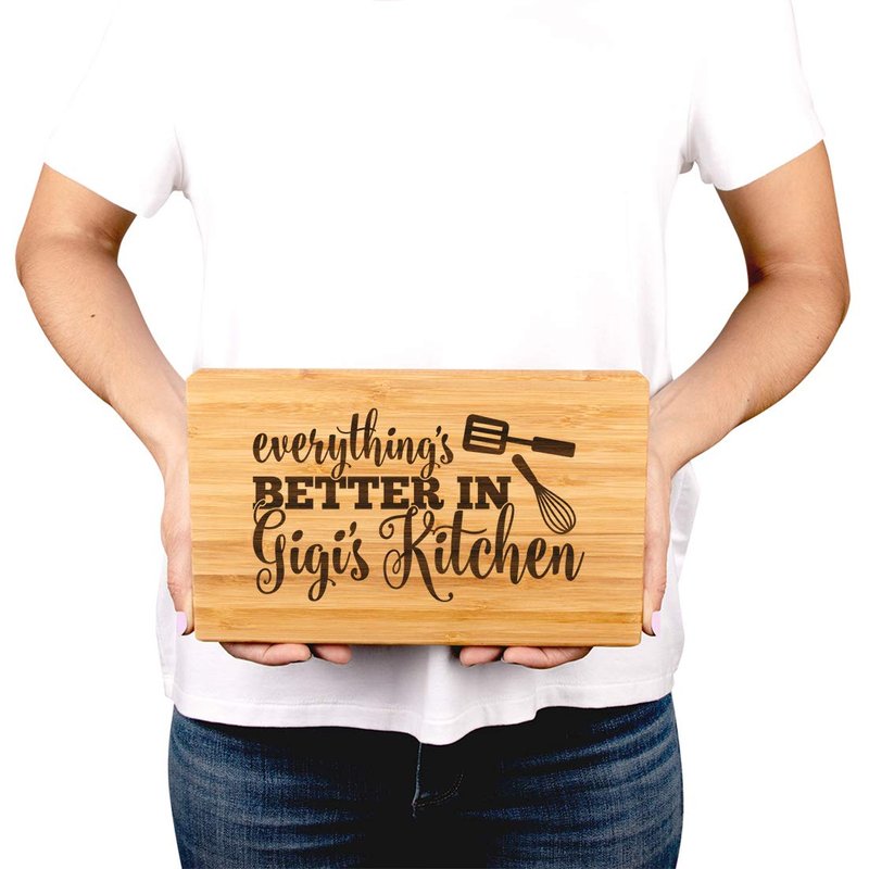 Andaz Press Laser Engraved Small Bamboo Wood Cutting Board, 9.5 x 6-inch, Everything is Better in Gigi's Kitchen, 1-Pack Grandma Mother's Day Mom's Birthday Grandma Cutting Board Grandma Gift Ideas