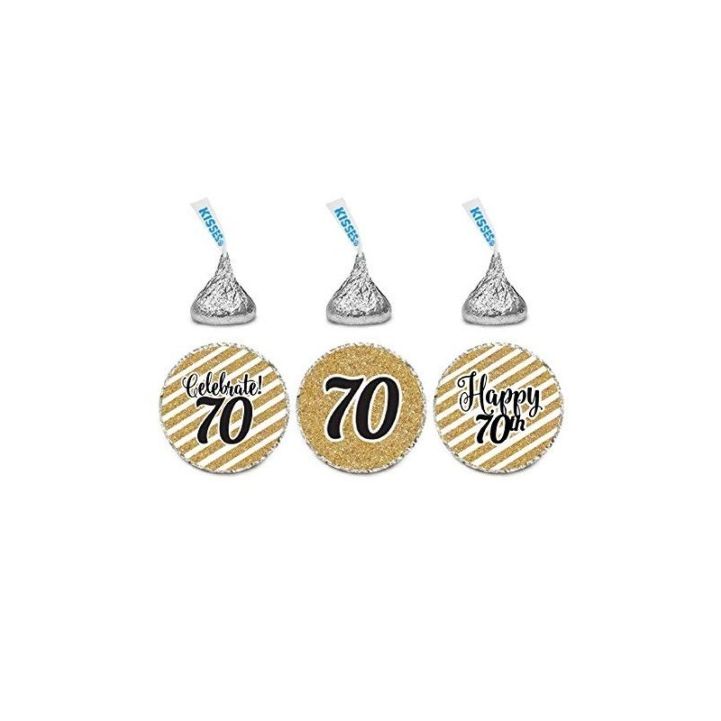 Andaz Press Milestone Chocolate Drop Labels Trio, Fits Kisses Party Favors, Celebrate 70, 70th Birthday or Anniversary, 216-Pack, Printed Gold Glitter, Not Real Glitter