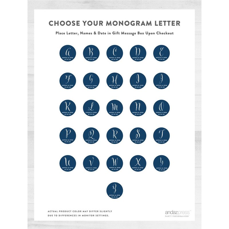- PLACE MONOGRAM LETTER, BRIDE & GROOM NAMES, AND WEDDING DATE in gift message box upon checkout.