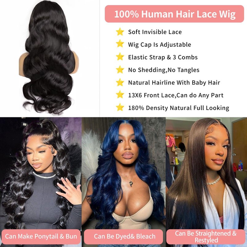- 🎀【Silky texture, dyeable and curlable】: 13x6 body wave human hair wig, easy to dye and straighten. Can redesign your hair to give you a whole new look