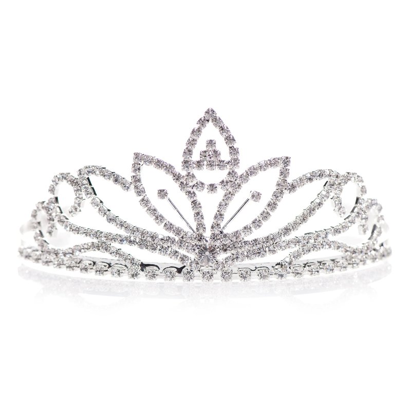 The Charlize Tiara measures an impressive 2" tall and features a selection of clear rhinestone accents that makes it a must-have for winter formals, Prom and Homecoming coronations as well as bridal parties, pageants and more. Tiaras are not only great for coronations they're also a hot, trending hair accessory for any event!