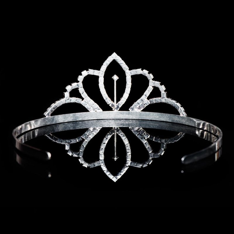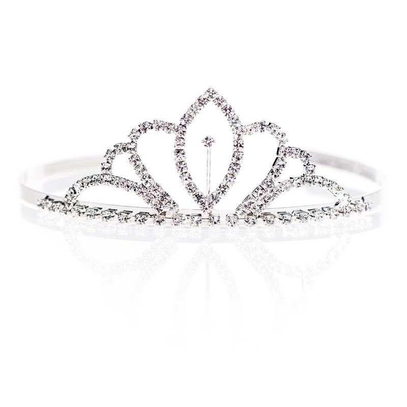 • This stunning silver plated copper tiara measures approximately 1 5/8" high at the center and 5.5" wide, suitable for all ages