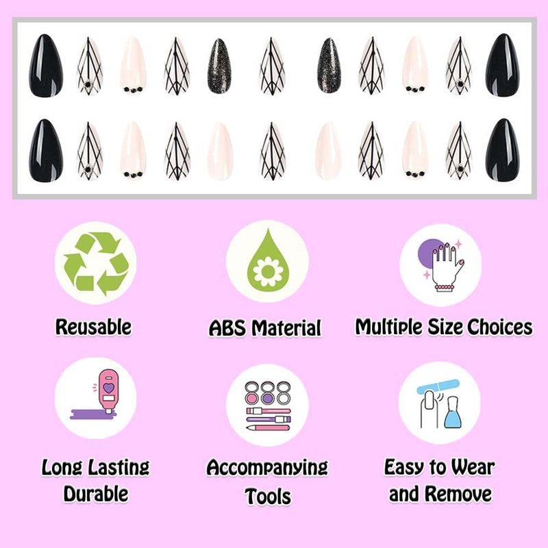 - [Diversified and unique styles] ANDGING integrates design into human nature, focusing on the flexible use of points, lines and surfaces to release inspiration freely, create a space that the soul desires, and lead the fashion trend of nail art. Classic White and Black, Pink, Blue, French, Flowers, Emo, Heart, Bling, Curved, Swirl, Flame Fake Nails... Every stroke is vivid and meticulous, will make your mani the talk of the town.