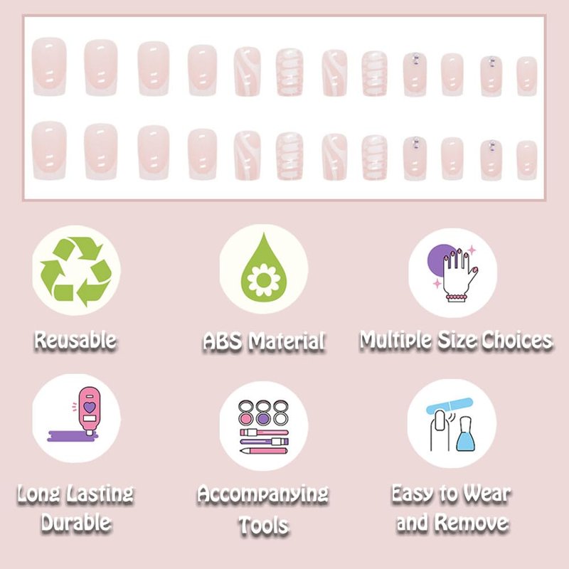 - [Diversified and unique styles] ANDGING integrates design into human nature, focusing on the flexible use of points, lines and surfaces to release inspiration freely, create a space that the soul desires, and lead the fashion trend of nail art. Classic White and Black, Pink, Blue, French, Flowers, Emo, Heart, Bling, Curved, Swirl, Flame Fake Nails... Every stroke is vivid and meticulous, will make your mani the talk of the town.