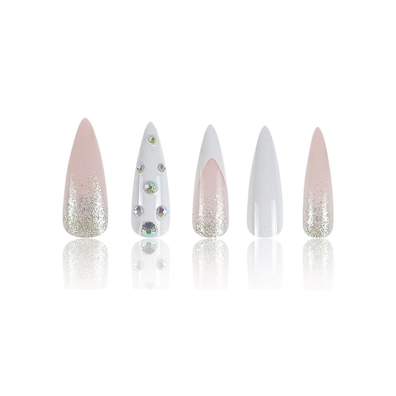 ANDGING Stiletto Press on Nails White Medium Length Fake Nails with Glue Acrylic Ombre Rhinestone Glue on Nails with Designs Fancy Gel Manicure False Nail for Women Stick ons Nails for Girls Wedding