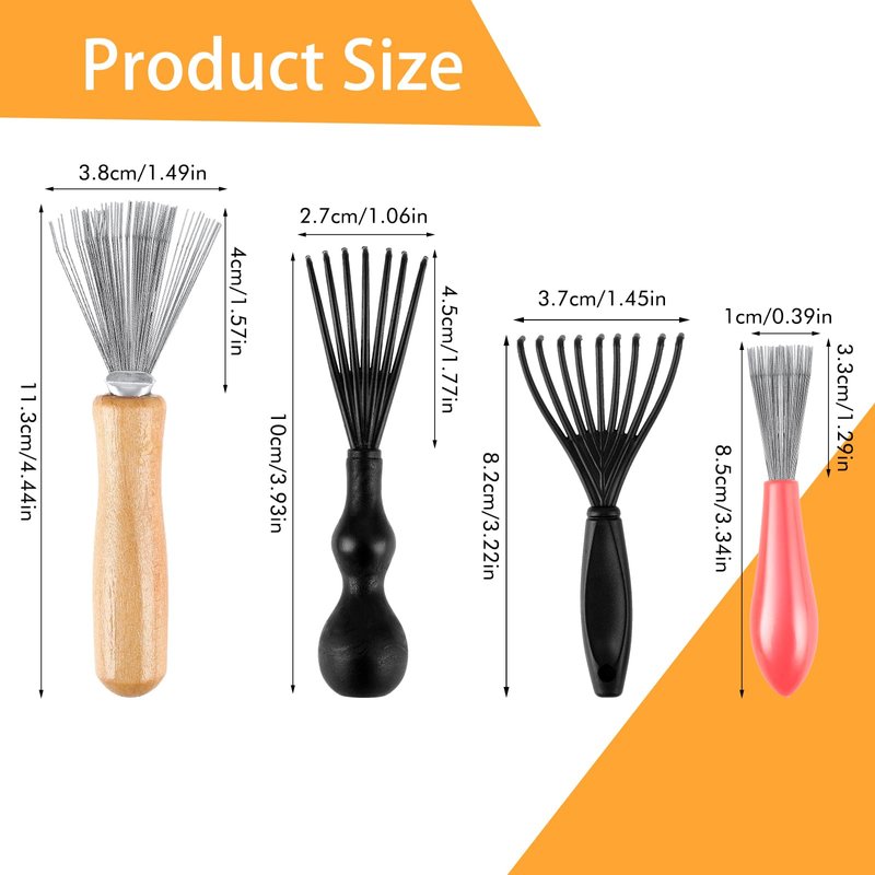 - 【Easy to Carry】Wooden handle cleaning rake claw part size - 4x3.8cm/1.57x1.49in, pink tiny bristle cleaning brush claw part size - 3.3x1cm/1.29x0.39in, plastic flat handle cleaning claw part size - 3.7cm/1.45in, plastic round handle cleaning claw part size - 4.5x2.7cm/1.77x1.06in. The mini cleaning brush is portable and can easily fit into your pocket or bag, allowing you to use them anytime, anywhere. It's a perfect choice for anyone experiencing hair loss troubles while combing their hair.