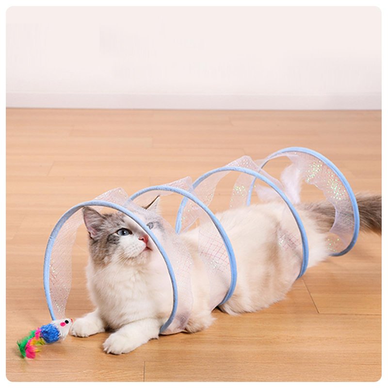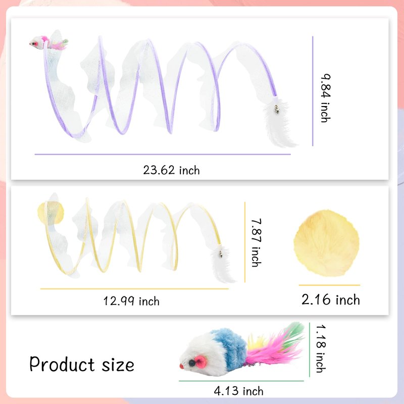 - With Bell to Attract Cats' Attention: Our cat spiral tunnel toy hangs bell feathers and small mice at both ends. Providing interactive fun for your cat, igniting the cat's curiosity. Attracting it through the tunnel again and again, aiming to bring more interest to the cat. Let the cat no longer be lonely and bored