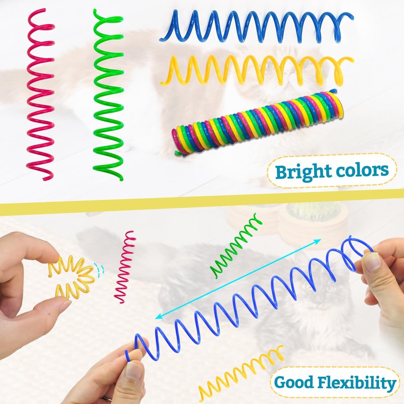 • 2024 Update-Special Mini Spiral Springs for Kitten: Our exclusive customized design for the mini springs for little cats. This cat spiral toy is so lightweight, and the weight of each spring is just 1g. You can bounce the spring on the ground easily. Each spring is about 3 inches long and 0.4 inches in diameter, making it a perfect size for little cats to play with