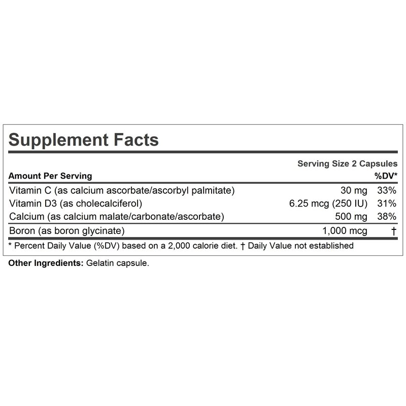 - SUPERIOR 100% PURE BIO-ACTIVE INGREDIENTS – Provides ultra-fine, super-soluble powder of 500 mg Calcium, Vitamin D3, Boron and Vitamin C. Contains NO Milk / Dairy-Free, Gluten-Free; NO soy, yeast, wheat, sodium, salt, sugar, fat, cholesterol, color, preservative, common allergens or manufacturing additives.