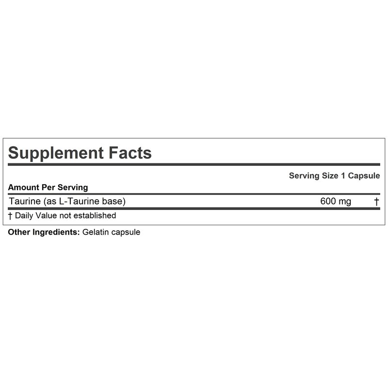 - SUPERIOR PURE BIO-ACTIVE INGREDIENTS – Delivers 600 mg of Taurine. Contains NO Milk / Dairy-Free, Gluten-Free; NO soy, yeast, corn, wheat, sodium, salt, sugar, fat, cholesterol, color, preservative or manufacturing additives.