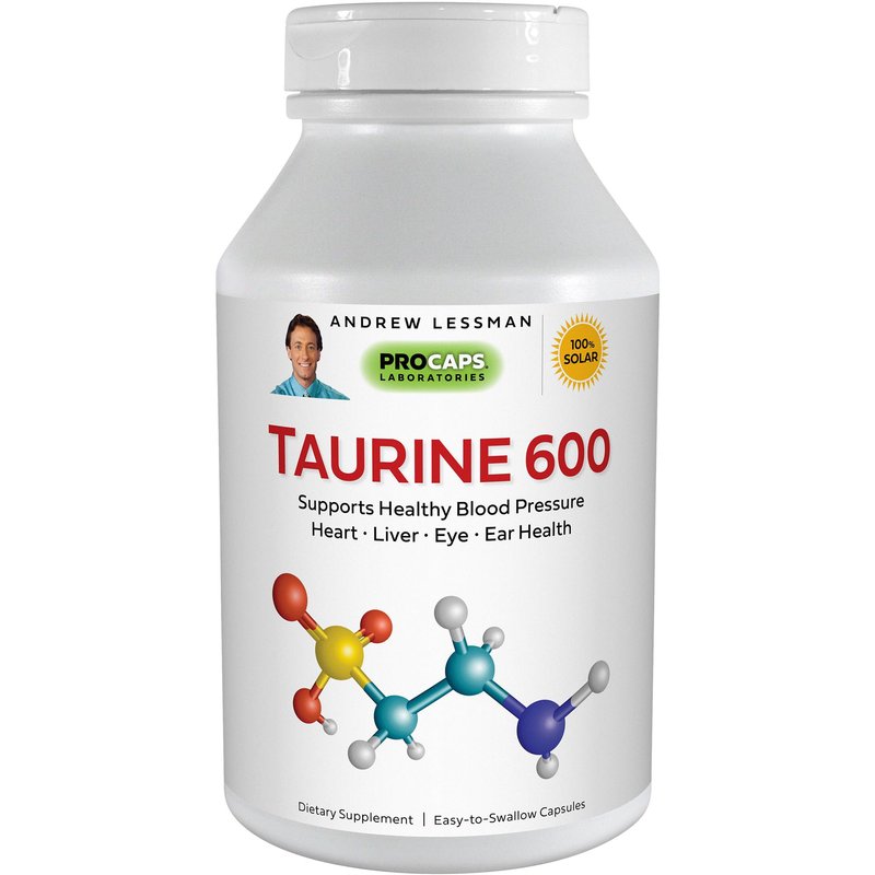 ANDREW LESSMAN Taurine 600-180 Capsules – Supports Healthy Blood Pressure, Heart, Liver, Eye and Ear Health. Pure, High Potency Source of The Amino Acid Taurine. No Additives
