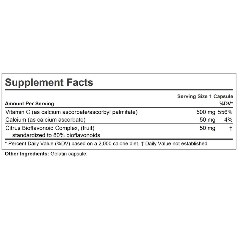 Andrew Lessman's VITAMIN C 500 COMPLEX is a pure, non-acidic Vitamin C formula combined with naturally-occurring Bioflavonoids. Unlike ordinary products, this formula's Vitamin C is uniquely non-acidic and therefore gentle even to the most sensitive stomach. This special formula promotes the greatest utilization of Vitamin C without the stomach discomfort, loss of potency and rapid nutrient loss associated with ordinary Ascorbic Acid. Vitamin C is a powerful anti-oxidant that protects numerous body tissues and systems, including our immune, skeletal and circulatory systems, along with our heart, brain, liver, skin and eyes. Vitamin C is readily depleted by stress and although abundant in the healthiest of foods, it is sadly lacking from the typical American diet, which is why it has become among the most popular separate supplements in America. The Calcium Ascorbate form of Vitamin C in this formula also provides a bonus of 50 milligrams of super-soluble, easily absorbed Calcium. It also comes with natural Citrus Bioflavonoids that are present in most Vitamin C rich foods. Our VITAMIN C 500 COMPLEX also comes in small, soft, easy-to-swallow capsules that are guaranteed gentle even to sensitive stomachs.