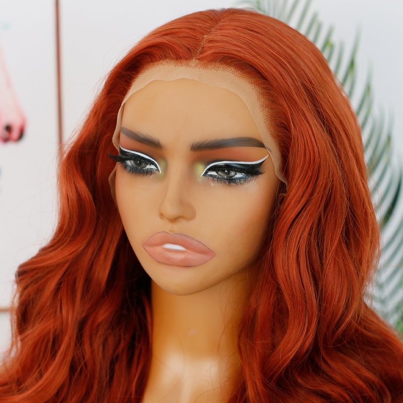 • Synthetic Ginger Orange Long Body Wave Lace Front Wigs for party or daily use.
