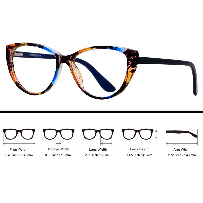 ANDWOOD Blue Light Blocking Glasses Women Bluelight Blocker Computer Cateye Clear Cat Eye Eyeglasses Frame Pattern