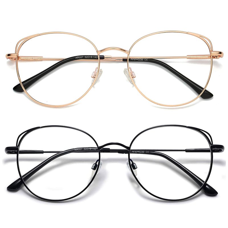 ANDWOOD Blue Light Blocking Glasses Women Cat Eye Computer Eyeglasses Metal Frame Hipster 2 Pack Rose Gold Black