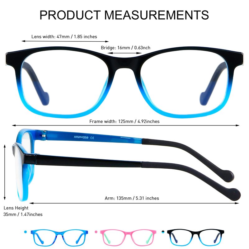 - 【Kids Blue Light Glasses】ANDWOOD Protect kids vision by blocking blue light. Enjoy digital time, your children can enjoy playing games without worry about eye fatigue, blurred vision and headache.
