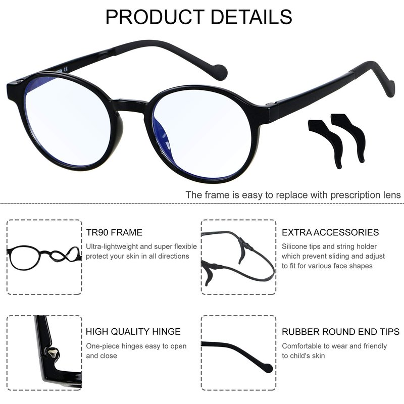 - 【Kids Blue Light Blocking Glasses】These glasses were designed with kids in mind. The light weight TR90 frame Impact resistant and can be twisted and bend, don't worry about the glasses being damaged by your child.