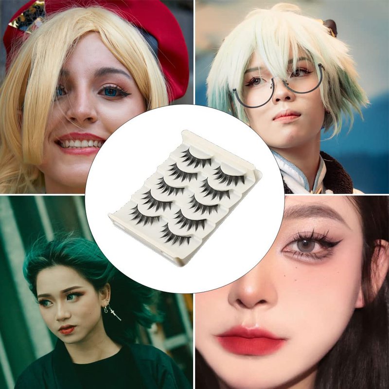 Andy's Orchids Cosplay Manga Lashes, Japanese Anime Eyelashes 3D Thick Fluffy Fake Eyelash Natural Look Eyelashes Little Devil Spiky Eye Lash Extensions 5 Pairs